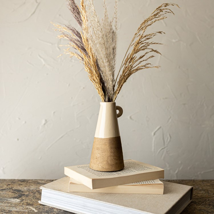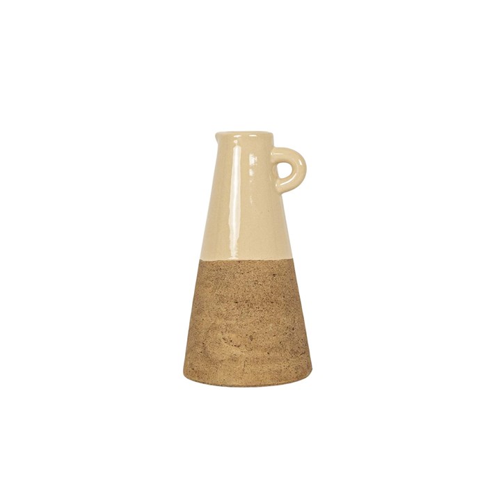 Add a touch of elegance and charm to your home with this stunning ceramic bud vase. The pitcher style design combines modern sophistication with traditional craftsmanship, making it a versatile piece that complements any decor style. The high gloss tan glaze and rustic brown finish create a beautiful color contrast, while the raw clay texture adds a unique artisanal touch. Whether you use it to display a single flower or as a standalone decorative accent, this bud vase is sure to bring beauty and style to any room in your home.