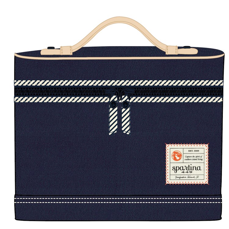 Complete your Spartina travel set with our floral durable, coated cotton Train Case. This stylish case is perfect for storing all of your morning routine necessities in one convenient place. The striped zipper pulls open to reveal a polyester lined interior with a slip pocket along the interior lid, providing ample space for your toiletries and cosmetics. The durable coated cotton material ensures that your belongings stay protected while on the go. Add a touch of elegance to your travel routine with this practical and chic Train Case from Spartina.