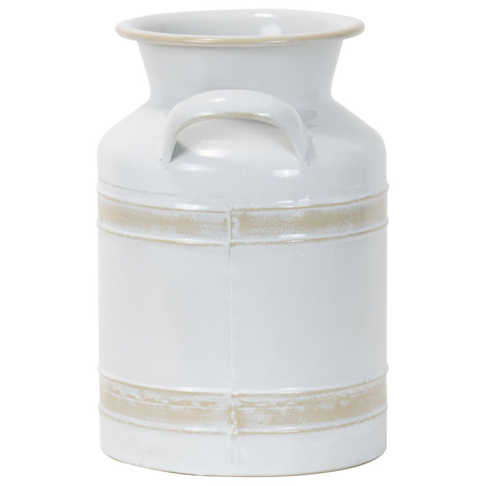 Add a touch of rustic charm to your home decor with the Axl Milk Vase Small from Foreside Home & Garden. This classic farmhouse-inspired vase is perfect for displaying faux or dried stems, adding a touch of natural beauty to any room. Pair it with the Axl Milk Vase Large to create a cohesive farmhouse vignette that will stand the test of time. The faux-ceramic finish gives this metal vase a modern yet timeless look, combining the best of enamel and stoneware for a truly unique piece. Add a touch of country chic to your home with the Axl Milk Vase Small.