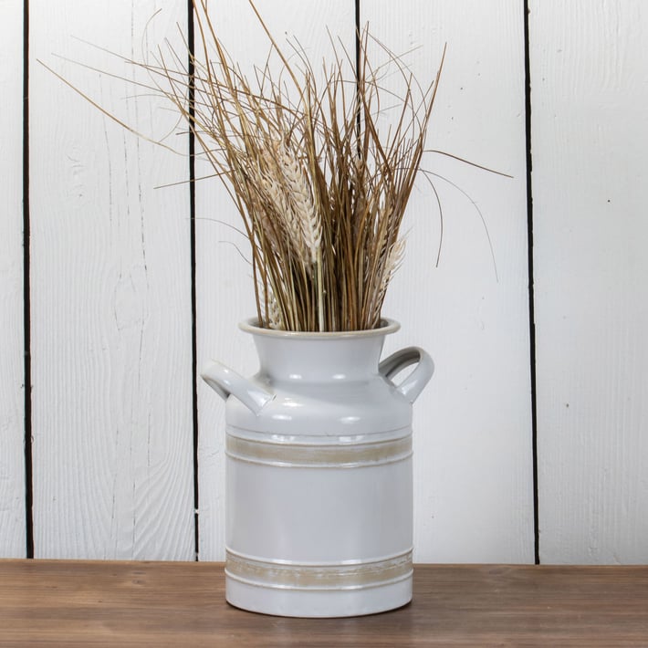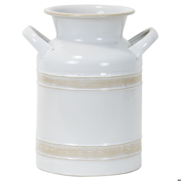Add a touch of rustic charm to your home decor with the Axl Milk Vase Small from Foreside Home & Garden. This classic farmhouse-inspired vase is perfect for displaying faux or dried stems, adding a touch of natural beauty to any room. Pair it with the Axl Milk Vase Large to create a cohesive farmhouse vignette that will stand the test of time. The faux-ceramic finish gives this metal vase a modern yet timeless look, combining the best of enamel and stoneware for a truly unique piece. Add a touch of country chic to your home with the Axl Milk Vase Small.