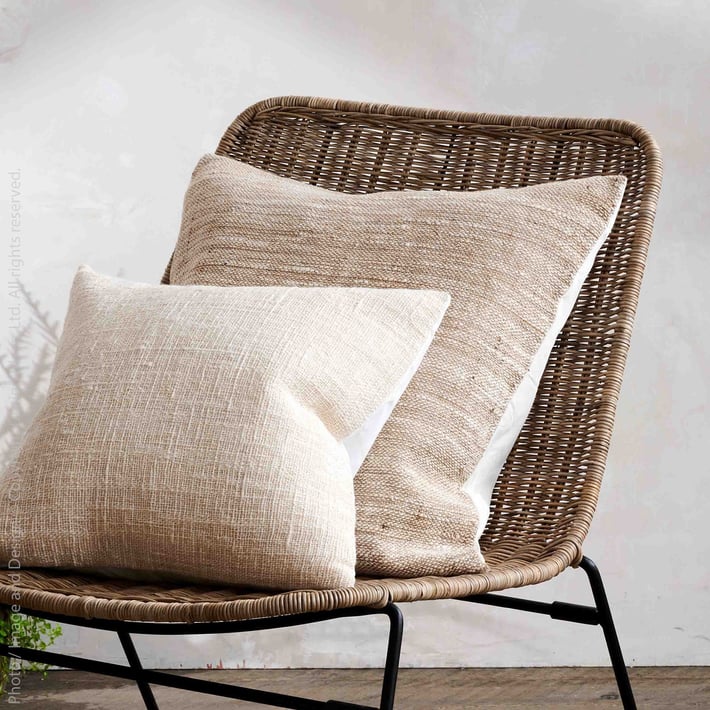 Transform any space into a luxurious oasis with the Capri™ Jute Cushion Cover. Hand woven with exquisite Tumanggal Thread, this cover adds a touch of sophistication to your home. Simply add your own pillow insert to create a cozy and elegant ambiance. Elevate your décor with this tasteful piece.