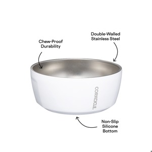 The Corkcicle Dog Bowl is the perfect combination of style and functionality for your furry friend. Made from durable stainless steel with an enamel coating, this bowl is built to last. The non-slip bottom ensures that mealtime stays mess-free, while the chew-proof design gives you peace of mind. Available in three stylish colors to match your decor, this bowl is also dishwasher safe for easy cleaning. Choose from two sizes to suit your pet's needs and enjoy the convenience and durability of the last dog bowl you'll ever need.