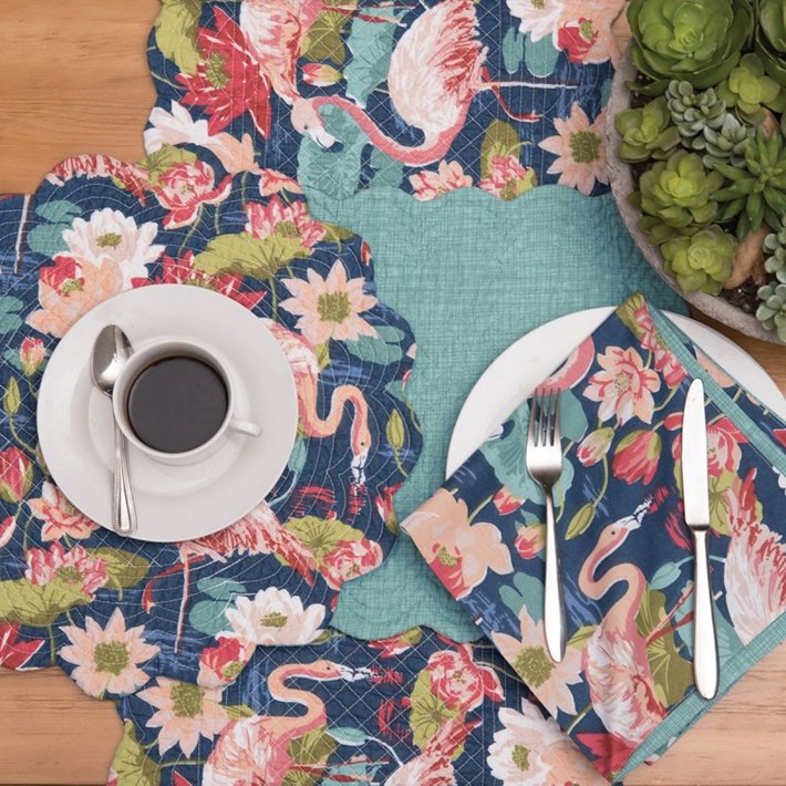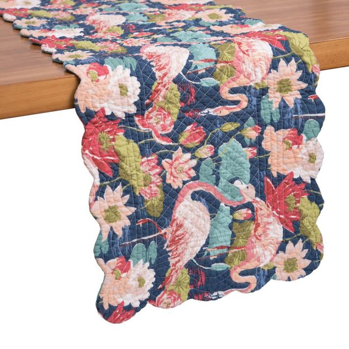 Add a touch of tropical elegance to your dining table with the Flamingo Lagoon Table Runner. Featuring a vibrant print of pink flamingos wading in a lagoon surrounded by lush greenery, this table runner is perfect for adding a pop of color and whimsy to your decor. Made from high-quality fabric, this table runner is durable and easy to clean, making it ideal for everyday use or special occasions. Whether you're hosting a summer barbecue or a formal dinner party, the Flamingo Lagoon Table Runner is sure to impress your guests and elevate your table setting.