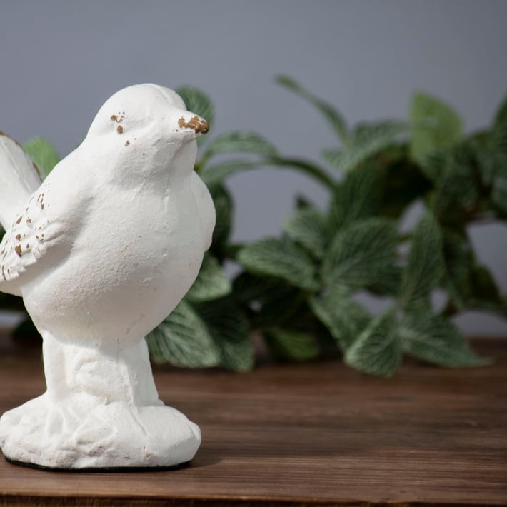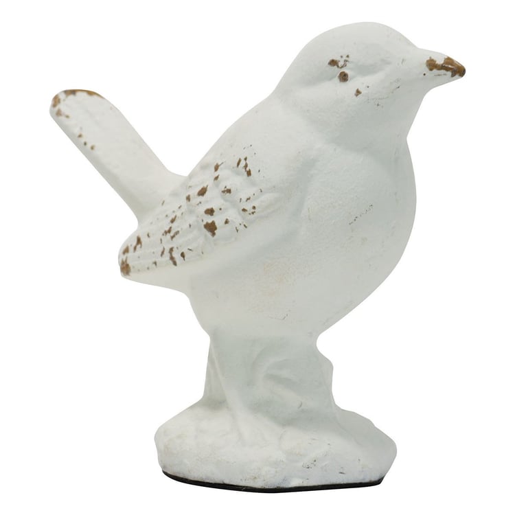 Add a touch of vintage charm to your home decor with the Flora Bird White. Made of durable cast iron, this decorative piece features a matte white finish with subtle distressing for a rustic look. Perfect for adding a touch of elegance to any space, this timeless icon can be displayed on a bookshelf, mantel, or coffee table. Pair it with the Flora Bird Gray for a coordinated look that will enhance the style of any room.