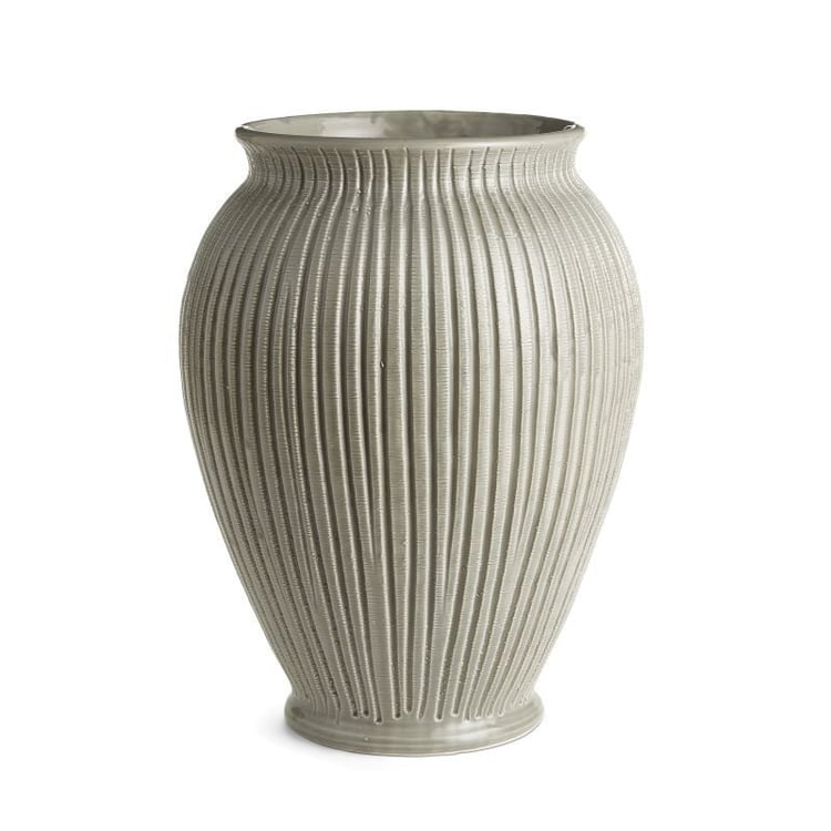 Handmade by skilled artisans in Tuscany, Italy, the Graffio Grande Urn is a stunning piece that combines classic Italian craftsmanship with a contemporary twist. The micro-etched ribbed pattern adds a unique touch to this traditional form. Each urn is a one-of-a-kind original, varying in size and color due to the handcrafted nature of the piece. This grand scale urn makes for a dynamic centerpiece on a feature table, kitchen island, or mantel. To maintain its beauty, simply dust with a dry cloth and line the interior when necessary to protect fine furniture. This decorative piece is for interior use only and comes in a sophisticated gray color. Add a touch of Italian elegance to your home with this exquisite handmade urn from Italy.