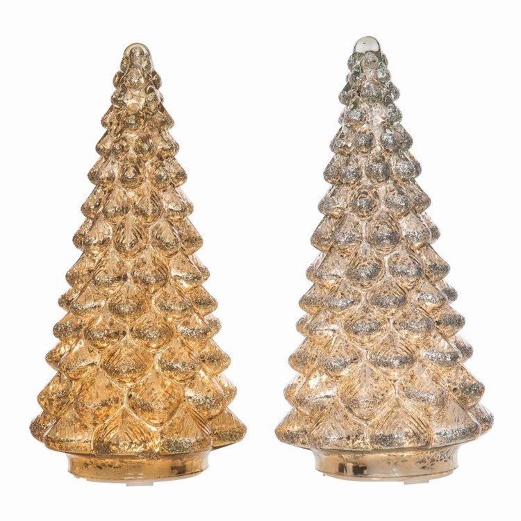 Glass Light Up Silver/Gold Tree 2 Asst