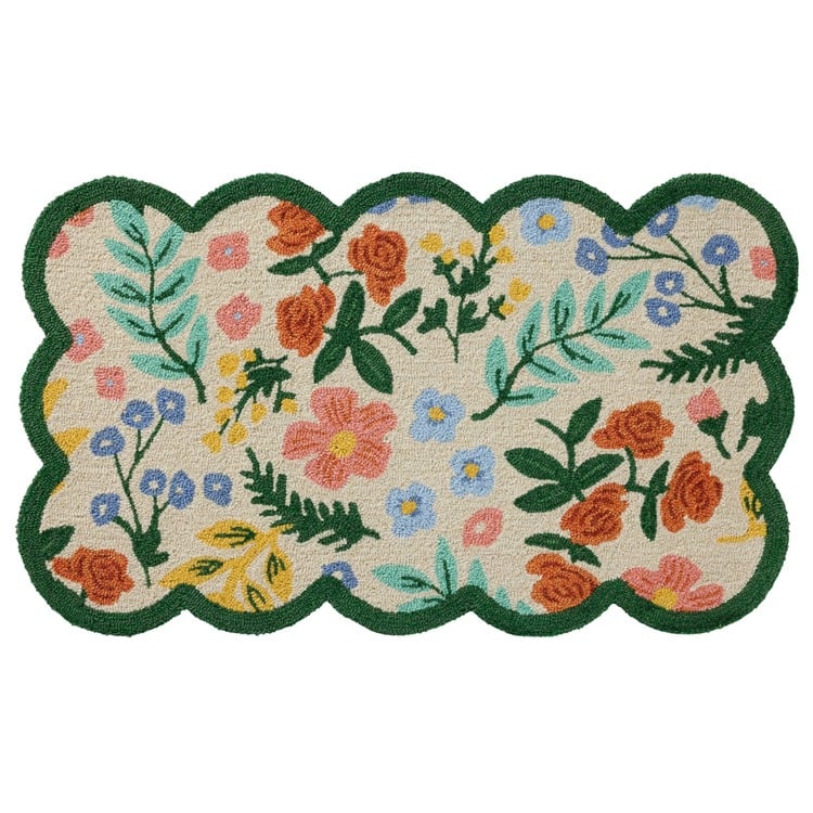 Brighten any entryway or room with this charming floral rug! Its playful scalloped edge and cheerful bouquet of colors instantly add warmth and personality to your space. Crafted for both style and durability, this mat not only welcomes guests with a fresh pop of design, but also stands up to daily foot traffic. It’s the perfect accent to invite springtime cheer into your home year-round—just imagine the compliments you'll get each time someone steps inside!