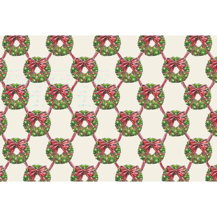 An abundance of wreaths and ribbons bring instant holiday cheer to your table with the Holiday Wreath Lattice Placemat. A classic Christmas statement on its own or serving as a foundation to other table settings, this fun and festive pattern is a whimsical addition to Christmas settings all season. Our paper placemats add an elegant touch to any tablescape. Designed and printed in the USA on FSC certified, recycled content. Padded set of 18 paper placemats. Approximately 18.5" x 12.5".