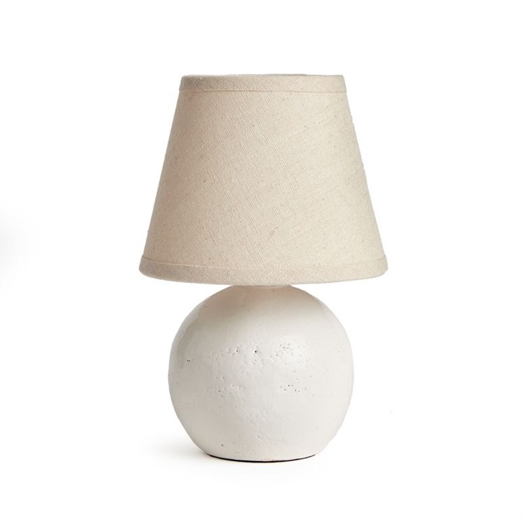 This sweet little off-white ceramic lamp is at home in any coastal setting. The textured cream shade and petite base make it a versatile piece. Great for kitchen counter, bookshelf or desk.