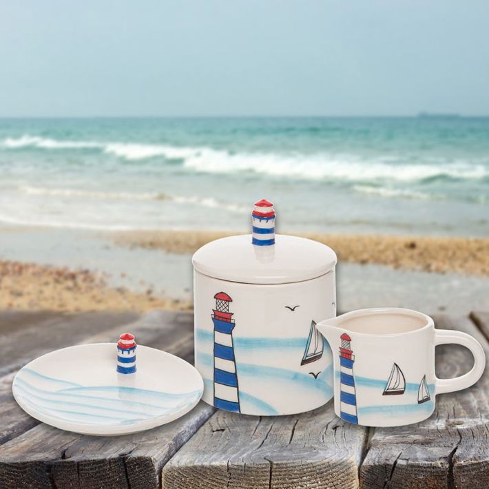 LIGHTHOUSE BEACH SUGAR BOWL W/LID
