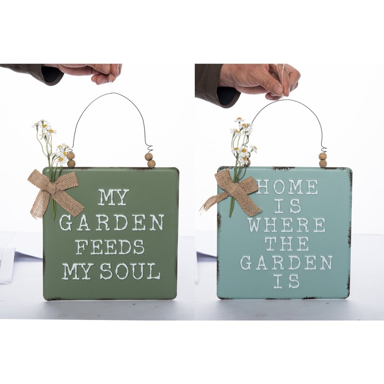 Metal Garden Sign w/ Wire Hanger 2 Asst