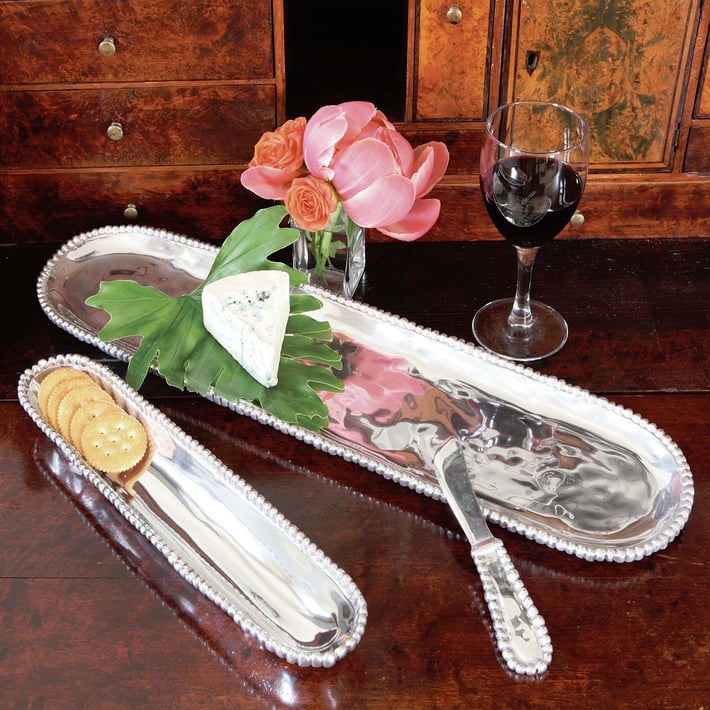 Celebrate in style! If you love to entertain, the ORGANIC PEARL cracker tray is an elegantly simple solution to serve your favorite crackers with panache. Made of an FDA safe, easy-care 93% aluminum alloy.