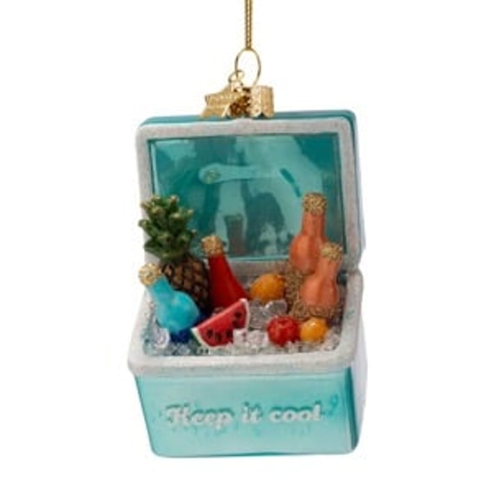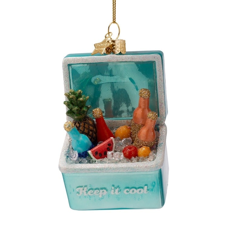 Add a splash of fun to your seasonal decor with this charming 'Keep it cool' cooler ornament! Bursting with vibrant details—glittery bottles, juicy fruits, and sparkling ice—it’s a playful reminder of summer days and good times. This eye-catching piece doesn’t just hang on your tree; it brings refreshingly joyful energy to any space, sparking smiles and conversation. Durable and delightfully crafted, it’s perfect for anyone who loves to celebrate life's little pleasures and brighten their holiday traditions.