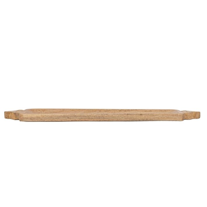 Crafted from natural mango wood, this exclusive design from Foreside Home & Garden is inspired by vintage parat bowls from India. The long rectangular tray features two intricately carved architectural handles, adding a touch of boho chic to your entertaining space. Use it as a serving tray for guests, or as a stylish coffee table accent. You can also display flameless candles or small potted plants on it for a stunning table centerpiece. Versatile and unique, this mango wood tray is a must-have for any home decor enthusiast.