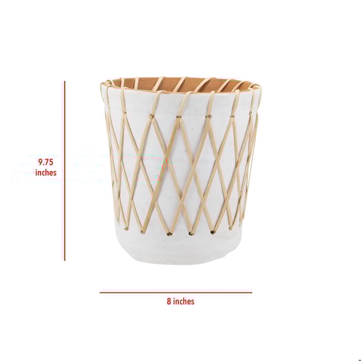 Add a touch of bohemian charm to your home decor with the Large Rattan Woven Planter from Foreside Home & Garden. This beautifully crafted planter is made from 100% terracotta and features a unique rattan woven design. Hand thrown, hand painted, and handmade by skilled artisans in India, this planter is not only stylish but also sustainable. Whether you place it indoors or outdoors, this planter will add a touch of natural beauty to your space. Upgrade your plant display with this stunning piece that combines traditional craftsmanship with modern design.