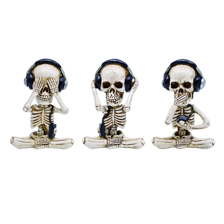Add a little personality and intrigue to your space with this quirky set of skeleton figurines! Sporting headphones and striking three distinct poses, these playful decorations bring a fun twist to classic decor. Whether you set them on your desk, shelf, or mantelpiece, they’re sure to spark conversation and add a light-hearted touch to any room. Durable and easy to display, these skeletons are perfect for Halloween or year-round for anyone who loves a bit of offbeat charm. Go ahead—let your decor show off its fun side!