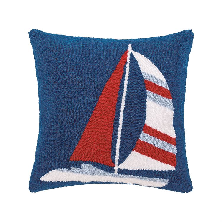 Add a touch of coastal charm to your home with this charming Sailboat Pillow. The hooked design gives it a unique texture that will add interest to your nautical decor. The convenient zipper closure makes it easy to remove the insert for cleaning, ensuring that your pillow stays looking fresh and new. Whether you're decorating a beach house or just want to bring a bit of the seaside into your home, this Sailboat Pillow is the perfect accessory for a smooth sailing style.