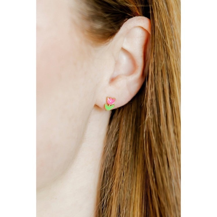 Add a playful pop of color to any outfit with these charming pink tulip stud earrings. Their whimsical floral design brings a touch of joy and personality, while the gold-tone finish makes them easy to pair with casual looks or dressier ensembles. Lightweight and comfortable, these earrings are perfect for all-day wear, letting you express your style effortlessly. Brighten up your accessory collection or offer them as a delightful gift - these studs are sure to spread smiles wherever they go.