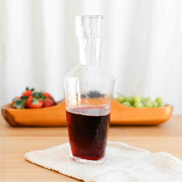 Our Serapha™ decanter is not quite round, not quite triangular, and not quite square. With a subtly hammered surface and a substantial solid glass stopper, this is an elegant vessel for decanting wine or treasured liquors.