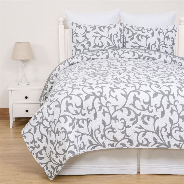 lable in a variety of sizes to fit any bed in your home. The soft, breathable cotton material of the Serendipity Gray quilt set will keep you comfortable and cozy all night long, while the elegant vine pattern adds a touch of sophistication to your bedroom decor. Whether you're looking to create a peaceful oasis in your master bedroom or a relaxing retreat in your guest room, the Serendipity Gray quilt set is the perfect choice. Complete the look with coordinating accent pillows, euro shams, and a bed skirt for a polished and cohesive design. Transform your bedroom into a tranquil sanctuary with the Serendipity Gray quilt set.