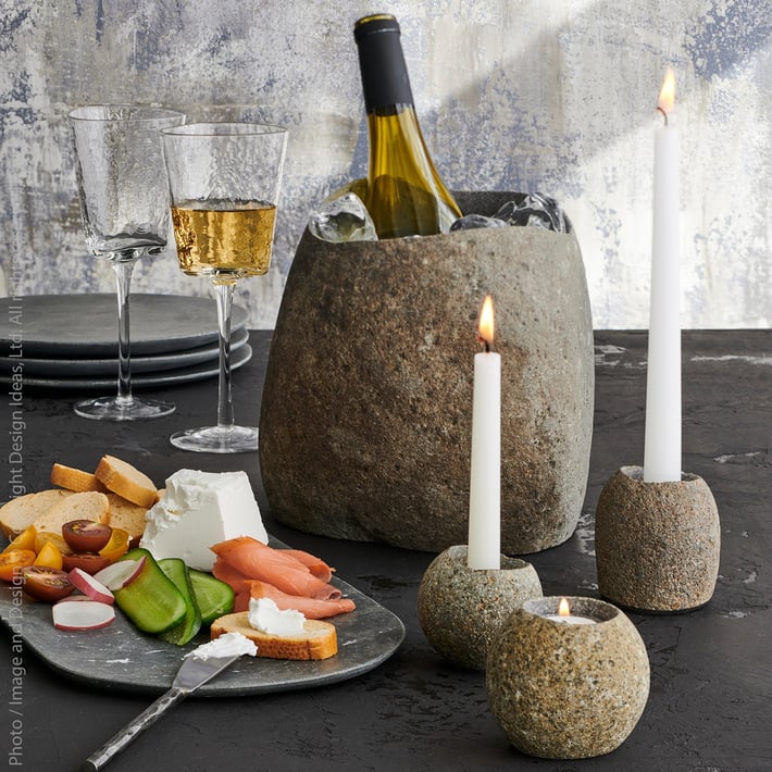 Indulge in the ultimate wine experience with our Stoneshardâ„¢ Carved Riverstone Wine Bucket. Handcrafted with naturally carved stones, this artisanal wine bucket brings elegance to any occasion. With temperature control capabilities, it can be heated or cooled for optimal serving. Dishwasher safe, but hand wash recommended for a lasting, hand-polished finish.