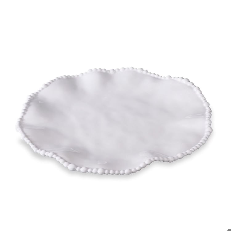 Dinner is served! By popular demand... the VIDA Alegria 11"dinner plate in white; an essential new item from Beatriz Ball's Alegria Collection of luxury melamine. With a charming pearl rim and a brilliant surface, the generous round dinner plate may be paired with other white dining pieces a 9" salad plate and a cereal bowl for a coordinated serving set. A table setting with a carefree and modern, Beatriz Ball twist!