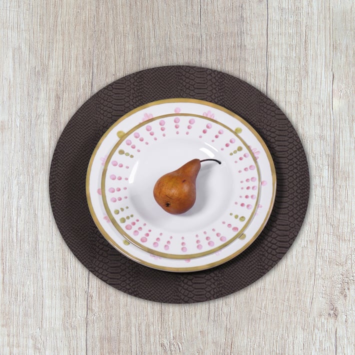Description: A place at the table. The VIDA Athena Dinner Plate 11" Set of 4 (Pink and Green), an irresistible item from Beatriz Ball's VIDA Collection, is a lively extension of our popular collection of luxury melamine. With a vibrant pattern of pink and green colored dots, the round dinner plate may be paired with other VIDA Athena plates for an easy care and fun table setting. Sold in sets of four.