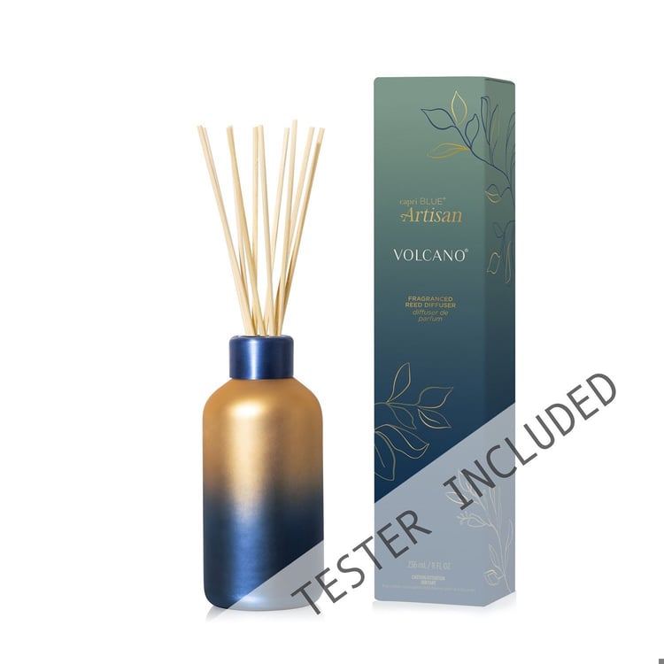 Transform any space into an inviting oasis with the Capri Blue Artisan Volcano Reed Diffuser. This stylish fragrance diffuser not only fills the room with its signature fresh, tropical-citrus scent but also adds a touch of luxury with its chic ombre bottle design. Perfect for busy days or relaxing evenings, it effortlessly keeps your environment smelling delightful—all while looking effortlessly elegant on any surface. Enjoy an instant mood boost and impress guests with this easy, flame-free way to scent your home. Tester included for peace of mind!