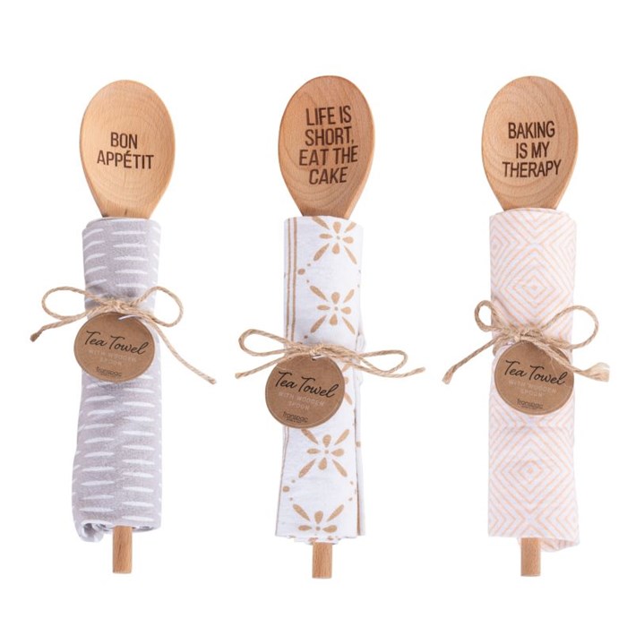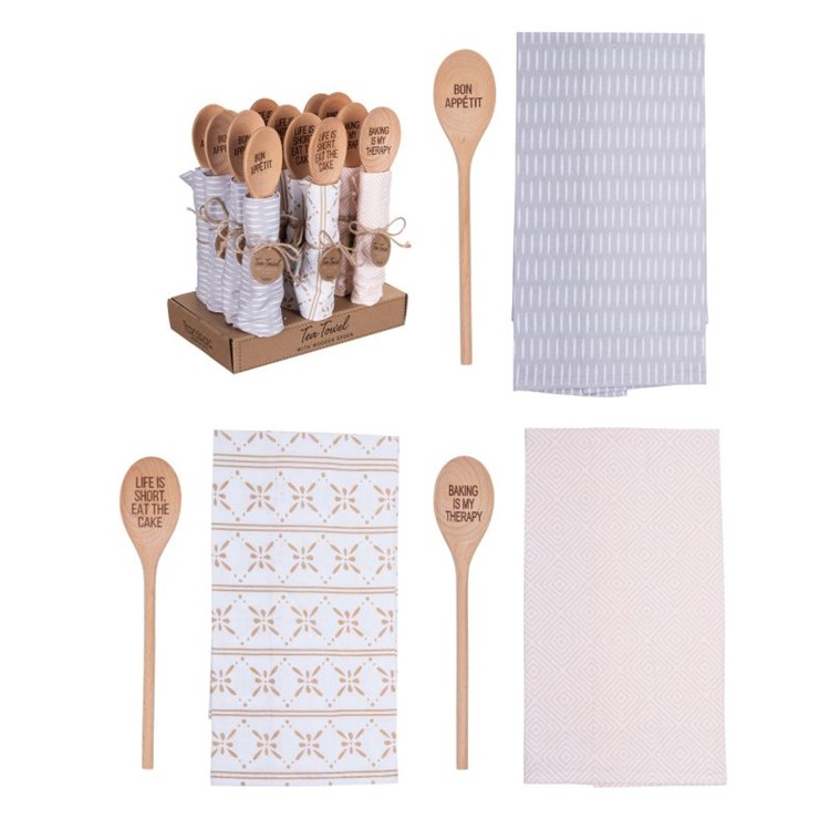 Wood Spoon/Cotton Towel Set in PDQ S/12